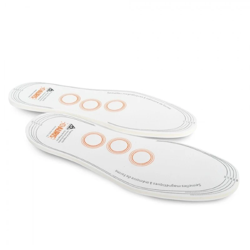 - Pair of insoles made from memory foam, and imbued with magnets